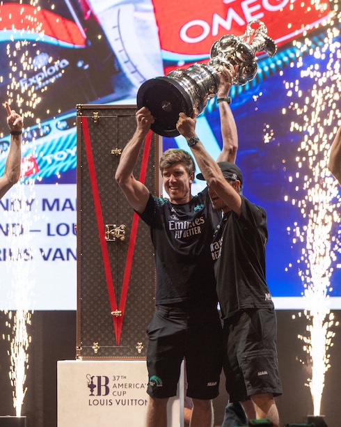 Louis Vuitton is delighted to announce its return to the America’s Cup as the Title Partner of the 37th edition, renewing its commitment to a legendary journey. This year, two exclusive trophy trunk designs were unveiled — the first for the Louis Vuitton Cup during the competition's initial stage, featuring a trunk lined with ivory-colored fabric, and the second for the iconic Auld Mug, awarded to the victorious team, Emirates Team New Zealand. Blending craftsmanship and tradition, both trunks are distinguished by the iconic Monogram canvas and the 'V,' symbolizing both 'Victory' and 'Vuitton.