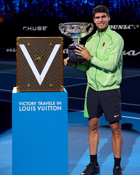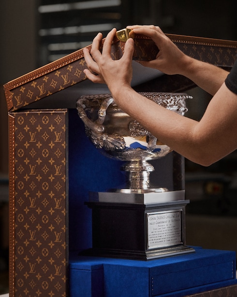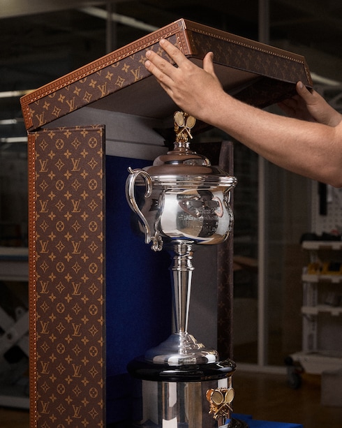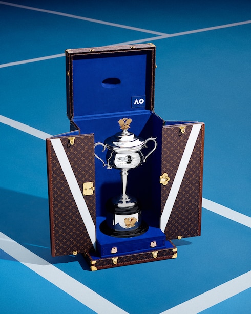 Honoring a long-standing commitment to tennis, Louis Vuitton joins forces with the Australian Open for a second year, as the event’s 2026 Official Trophy Trunk partner, creating two bespoke Monogram trunks to protect the Women's Daphne Akhurst Memorial Cup and Men's Norman Brookes Challenge Cup. Showcased during the final tournaments and the prestigious prize-giving ceremonies, the two custom-made creations are lined in microfiber blue to match the competition's color codes, while a white AO logo features on the underside of the lid.
