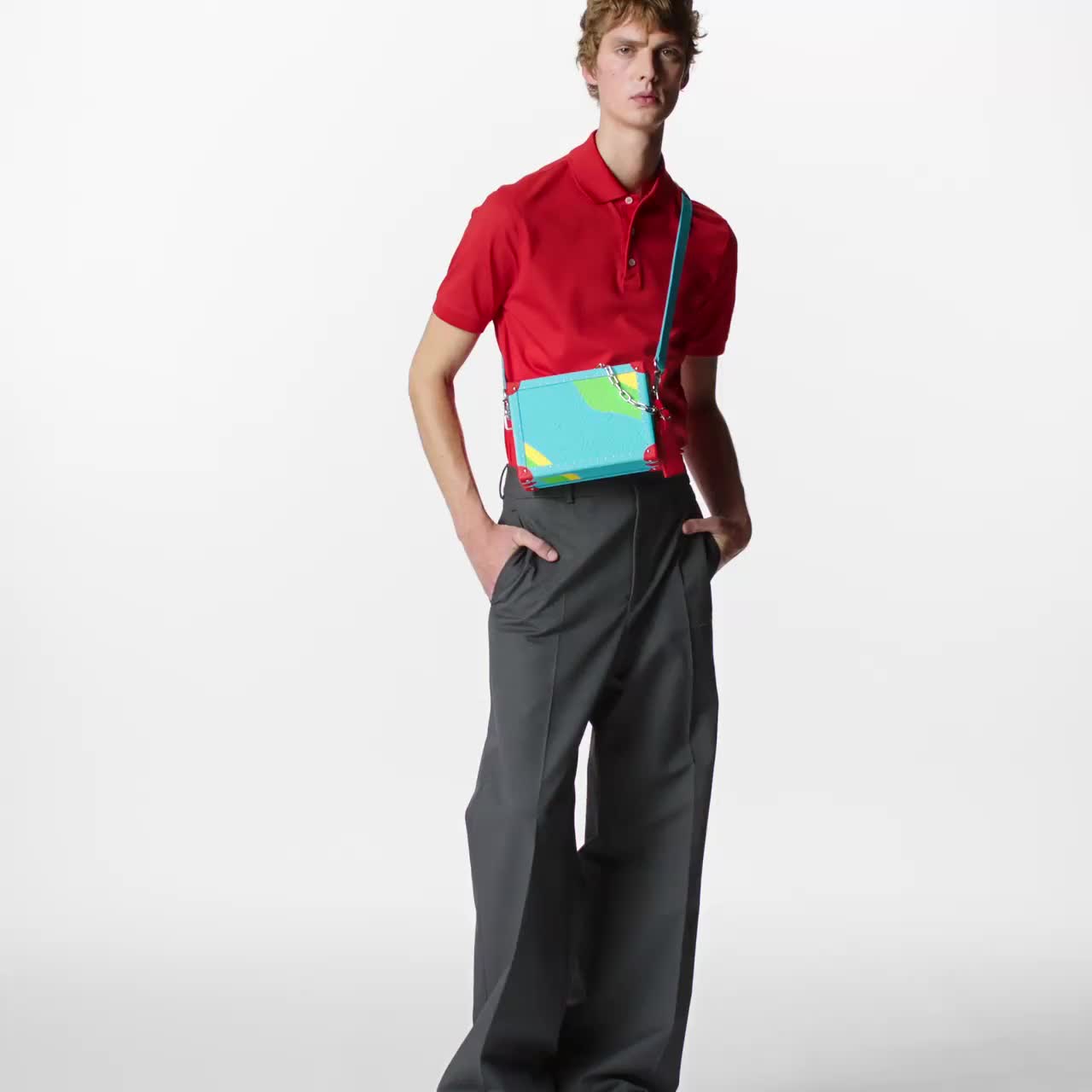 For Men SS23, iconic Clutch Box is reinterpreted with playful Rainbow Playdough animation. Answering the needs of the fashion, city-dweller, the Clutch Box Rainbow Playground is perfect from day to evening, bringing a fashion, playful touch to any outfit thanks to the combination of four pop and fresh colors.