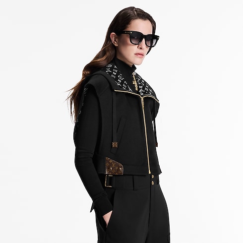 This zip-up jacket is a sporty House staple in a contemporary open-arm silhouette. It is cut from a cozy double-face wool-silk blend, which is signed on the inside with a tonal Monogram motif. The hood is trimmed with sleek leather drawstrings, while two practical pockets complete the look.