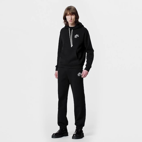 This smart hoodie is made from brushed back cotton felpa and has a lined hood, kangaroo pocket and a ribbed bottom hem and cuffs. It features one of this season’s iconic colors, set off by contrasting white cords and an embroidered white Louis Vuitton signature on the chest, underlined by a matching staple pin.