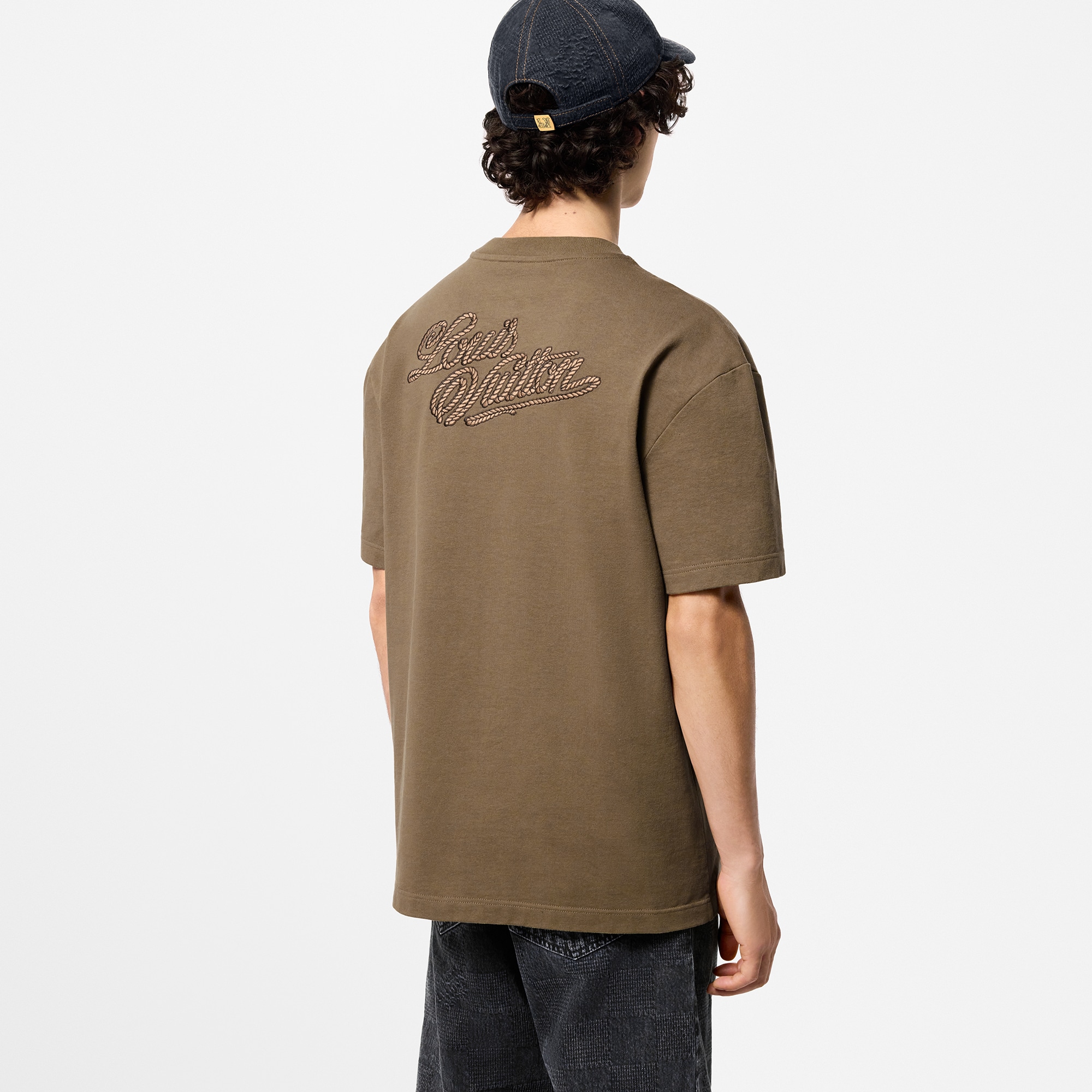 This smart organic cotton t-shirt is embellished with lasso-inspired LV Ropes signatures from the FW24 Show, with a meticulously embroidered LV Vers patch on the chest and a Louis Vuitton signature on the back. The elegant khaki tones make this a versatile piece that is easy to mix and match with casual summer looks.
