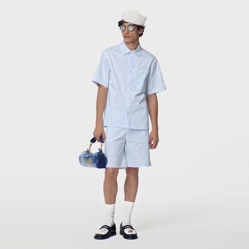These versatile cotton twill shorts have a tactile twist to their workwear silhouette with two button-down patch pockets embellished with a velvety allover Monogram flock print. With its easy cut, this is an essential wardrobe addition, which has a matching short-sleeved shirt for an effortless summery look.
