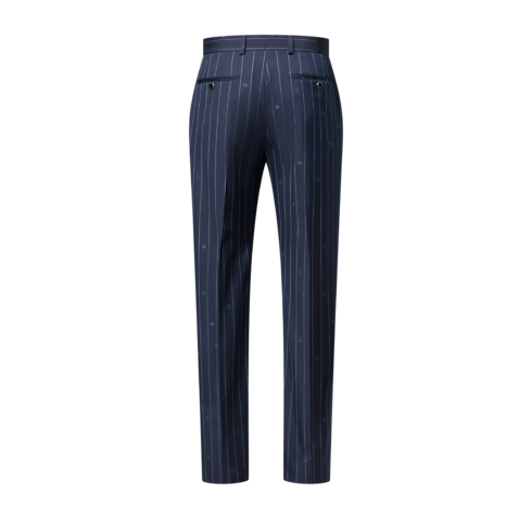 These navy blue cigarette pants play with the codes of tailoring by reinventing the classic pinstripe motif, which is reconfigured here as a tonal Monogram Pinstripes jacquard with Monogram elements dispersed amongst the stripes. Crafted from fine wool, these flattering pants make a sophisticated business suit paired with a matching jacket.