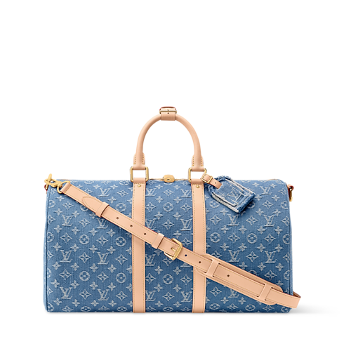 This Keepall Bandoulière 45 is crafted from iconic Monogram Denim, paired with gold-tone hardware. The result is a bold, streetwear-inspired look that’s effortlessly cool. The removable name tag features a distressed denim effect and is signed with the LV Initials. Top handles and a detachable, adjustable strap offer versatile carry options.