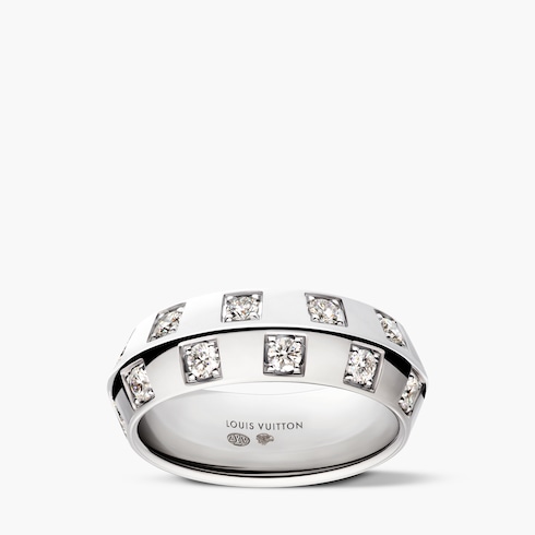Le Damier de Louis Vuitton Large Ring, White Gold and Diamonds