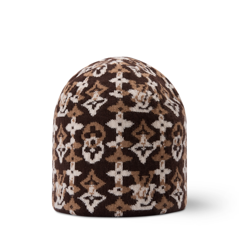 Beloved for its softness, the LV Crush Monogram Overlap beanie is crafted from a comfortable wool blend and made in Italy. On one side, the showstopping Monogram Overlap pattern reflects the influence of stenciled advertisements in India. For a simpler look, the plain brown reverse is embroidered with "LOUIS VUITTON PARIS" in light brown.