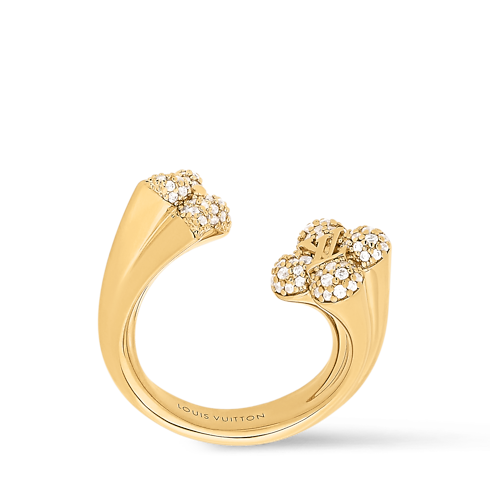 With its imaginative design and superb craftsmanship, the LV Flower Comet ring makes a striking contemporary-chic statement. The geometric precision of its gold-toned open band contrasts with the delicate curves of Monogram Flowers at either end, paved with dazzling rhinestones. The LV Initials add an extra House touch to this sophisticated, eye-catching ring.