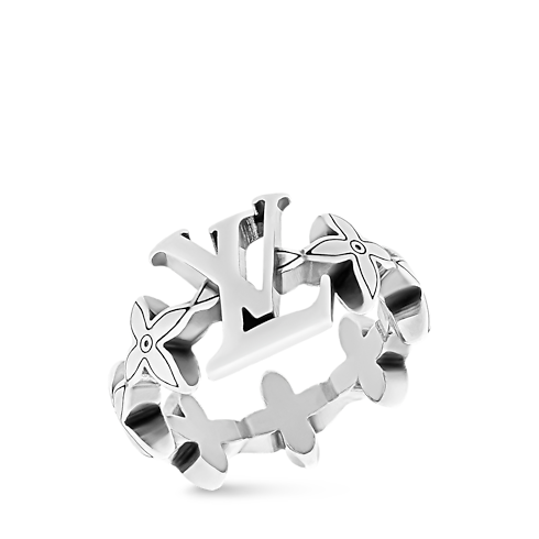 The LV Flower Puffy Chain ring is a sculptural reimagining of the iconic Monogram. The faces of the flowers are gently rounded, as is the center pair of Initials, and etched with a fine outline of black enamel. This union of materials and shape is a bold celebration of the House iconography.