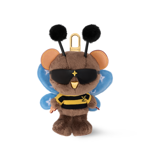 The LV Louis Bear Bee adds a burst of levity wherever it goes. The iconic mascot is dressed as a sly and stylish bee in celebration of spring. It wears a striking costume of blue wings, a black and gold striped top, and dark sunglasses, symbolizing the season's spirit of renewal and possibility. Please note the products are hand made and showcasing the craftmanship of the House. This is solely a bag accessory, and it must not be entrusted to children under the age of 14.