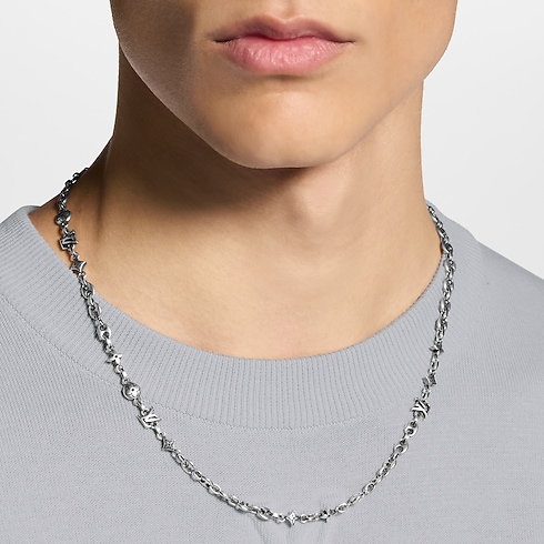 The LV Sailor Mini necklace is an understated addition to the marine-inspired family of everyday jewelry. Fashioned from polished sterling silver, the sized-down links create a compelling chain of House signatures and unusually detailed components that take their cues from nautical instruments. The result is a romantic style that honors the past.