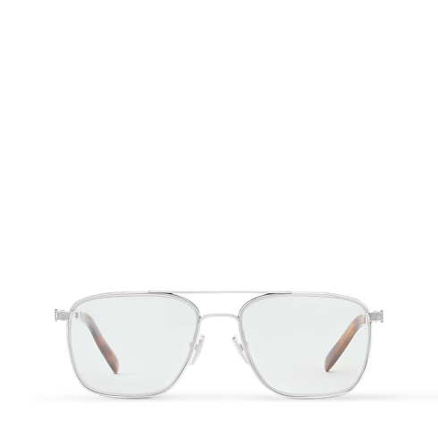 With its retro shape and subtle signature style, the LV Whisper Squared Pilot optical frame brings a fashion-forward attitude to everyday eyewear. Crafted in palladium-colored metal, its temples are adorned with the iconic LV Initials for a discreet House touch. This sophisticated, timeless frame is a tribute to the Louis Vuitton woman: strong and fiercely independent.