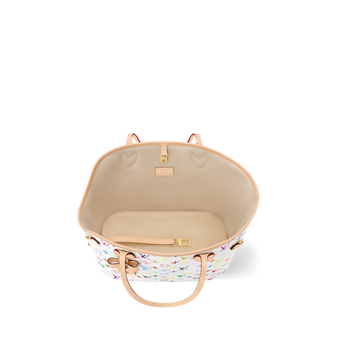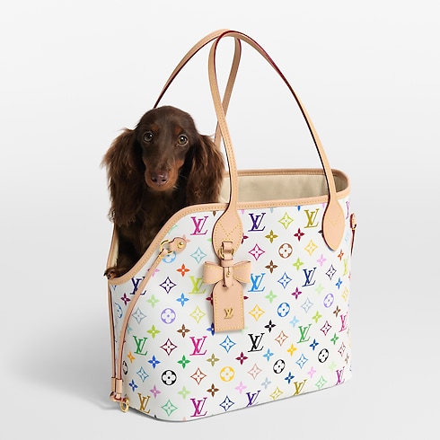 Made from the classic Monogram Multicolore canvas imagined by Takashi Murakami in 2003, the Neverwoof MM brings pet carrier functionality to the iconic Neverfull carryall. Sized to fit a small dog in its padded interior, this bag boasts an internal leash, as well as a removable and washable soft mat.