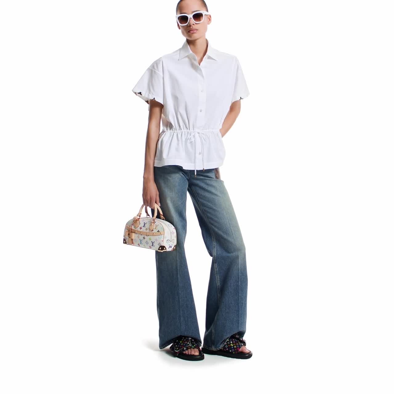 The Pool Pillow flat comfort mule from the cross-category Louis Vuitton x Murakami collection makes a bold contemporary statement thanks to a wide, padded velcro strap embellished with a zipped pouch. The allover Monogram motif is vibrantly uplifted in cheerful tones inspired by Japanese artist Takashi Murakami’s signature multicolored aesthetic, while an anatomic footbed and lightweight treaded outsole offer casual comfort.