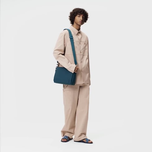 With its minimalist design, unified colorway, and cut corners on the front flap, this Takeoff Messenger bag is clearly part of the LV Aerogram Collection. Made from grained leather, it features tone-on-tone LV Initials in metal on the front. An adjustable and removable strap, with “Louis Vuitton” woven into the textile, enables shoulder and cross-body wear.