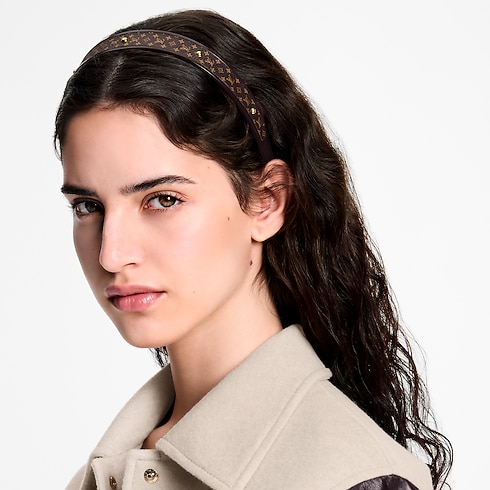 The sleekly stylish MNG Resin headband offers an ideal combination of sophistication and practical functionality. This sturdy but flexible resin band is adorned with the classic Monogram pattern, accented with gold-colored studs recalling the rivets on the House’s historic trunks. Perfect for keeping the hair neatly in place with a touch of Louis Vuitton flair.