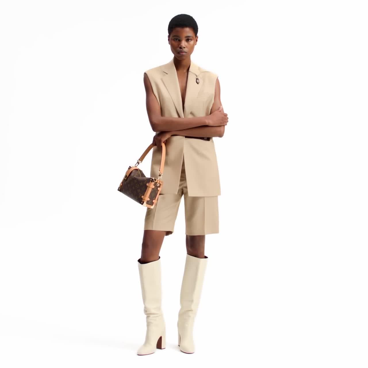 This sleeveless blazer is tailored with contemporary codes for a sharp statement look. It is cut from a refined blend of wool and mohair in a versatile shade. The smart notched lapel collar is playfully embellished with a zipper detail, while the button fastening is trimmed with a Monogram canvas tab for a signature accent.