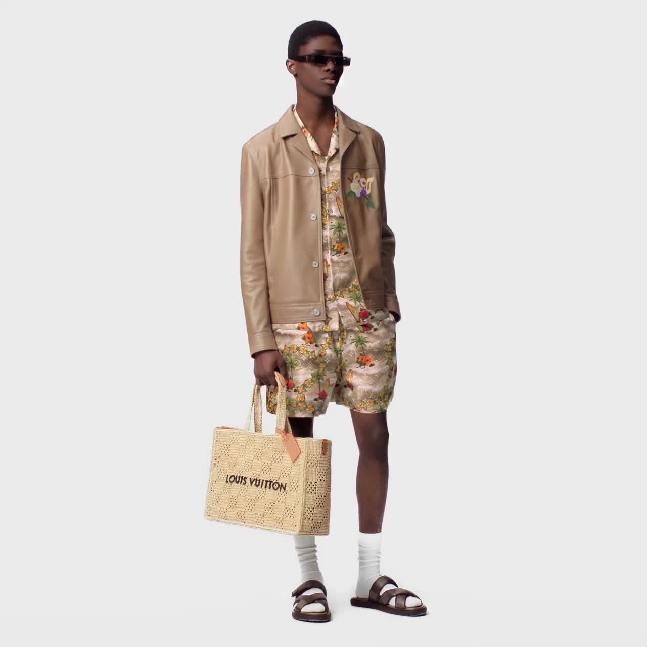 These refined silk shorts have an easy drape that moves effortlessly from day to night. They are embellished with an allover Monogram Sand Beach print featuring iconic symbols of paradise islands, mixing surfboards and flowers. This piece can be paired with a matching shirt for a graphic ensemble.