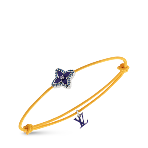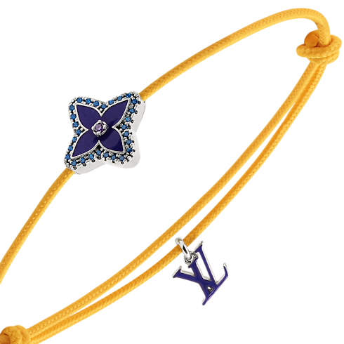 The Monogram Stesia cord bracelet is a celebration of the tension between textures, colors, and materials. The enameled, flower-shaped bead is outlined with rhinestone detailing, with a center to match. An adjustable, knotted cord tempers its grandeur, as does the enameled Initials charm, ensuring this piece stays in daily rotation.