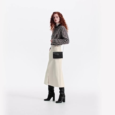 The Mylockme Chain Pochette is a stylish way to carry a smartphone and other essentials. Crafted from supple calf leather, this pouch reprises the key signatures of the Lockme line: the envelope-style flap, front pocket and LV Initials clasp. It can be carried over the shoulder or across the body on its long chain.