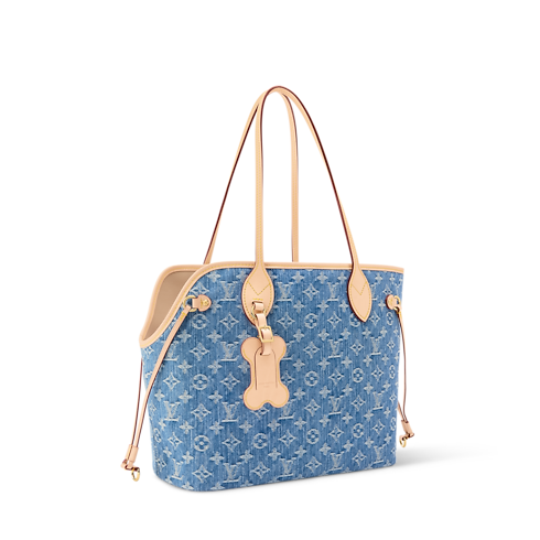 The casual charm of soft denim is paired with natural cowhide leather on this Neverwoof MM in Monogram Denim. A stylish solution for traveling with pets, there’s a padded interior features a carpet – washable and removable – along with a leash attachment for added security. The top corner is cut so a pet’s head can peek out.
