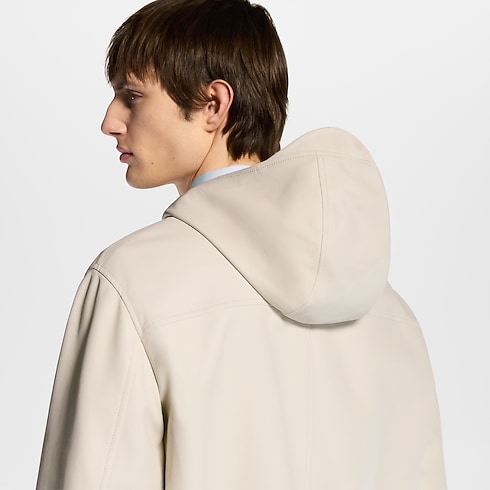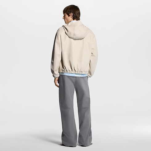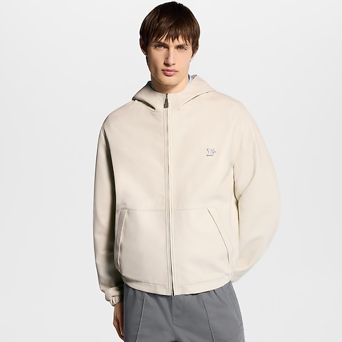 This reversible hooded blouson makes a versatile and sophisticated layer for spring. It has a supple white leather exterior, whose minimalist silhouette is adorned with a metal LV ornament on the chest. Reversed, it features technical Monogram jacquard fabric, with sporty pastel-toned color-blocked inserts. This go-to midseason piece can complete many looks, ranging from understated elegance to sporty fashion-forward styles.