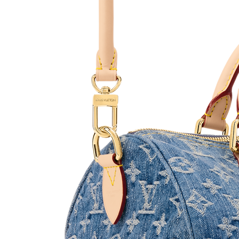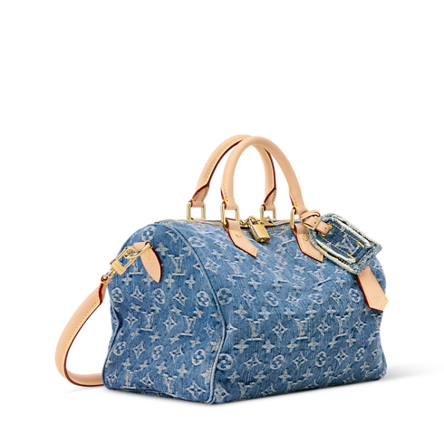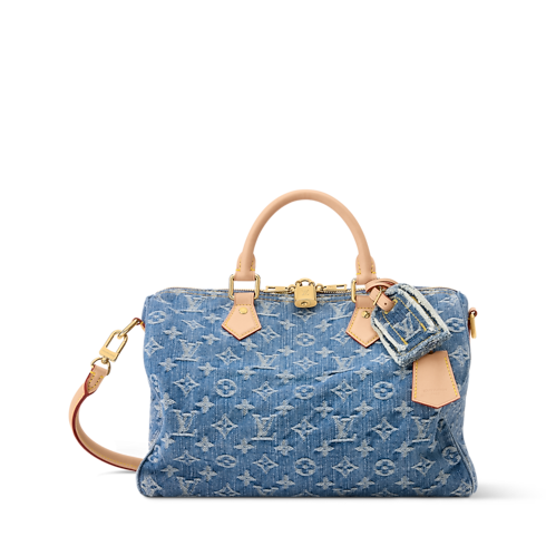 This edition of the Speedy Soft 30 is updated in Blue Denim, adding a contemporary spin to the classic design. Patterned with the House's iconic Monogram, it is trimmed with a contrasting leather handle, removable strap and a decorative keybell embossed with the Louis Vuitton signature. It is generously sized to fit the essentials, plus a tablet and book, making it ideal for weekends or commutes.