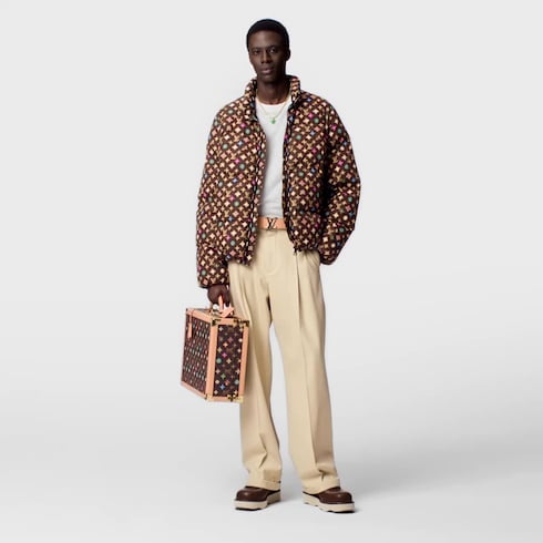 These soft wool and cotton blend chinos in warm vanilla tones bring refined elegance to an ensemble. Front pleats and turned cuffs combine with a relaxed fit to create a draped silhouette. The back is distinguished with a leather LV patch, while a wavy pocket adds a playful twist. These timeless pants are perfect for completing this collection’s golf-inspired looks.