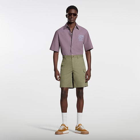 These timeless khaki cargo shorts combine elegance with utility, inspired by this season’s chic hiking theme. Cut from technical cotton-blend fabric, they have practical cargo pockets on the sides, while a tone-on-tone embroidered L.V.M. Legacy signature adorns the left leg. This versatile piece can complete a wide range of everyday looks.