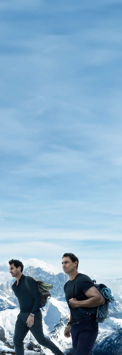Climbing the summit of Italy's Dolomites equipped with a signature touch from the Maison, two of tennis's most revered legends, Roger Federer and Rafael Nadal, embark on a journey of ambition, devotion, and discovery.