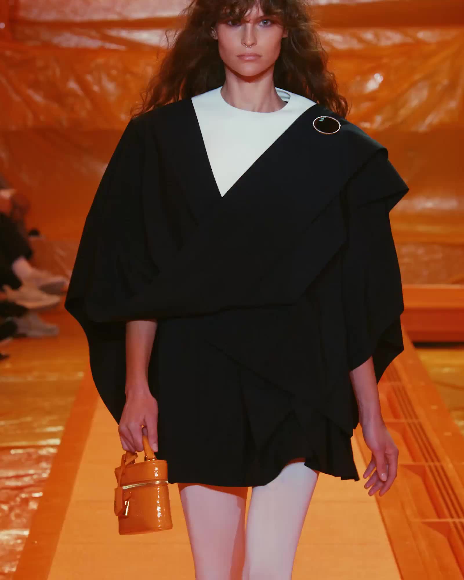 Kreasi menawan ini memadukan mode klasik ala Paris dengan gaya busana vintage, dihiasi dengan garis-garis grafis dan corak yang canggih. Nicolas Ghesquière bermain dengan lapiran bervolume untuk menciptakan siluet ringan dan ansambel yang dirancang khusus, masing-masing mencakup aspek feminitas yang berbeda, disempurnakan dengan hiasan kreasi ikat pinggang atau aksesori dari bahan rhinestone untuk tampilan yang berani.