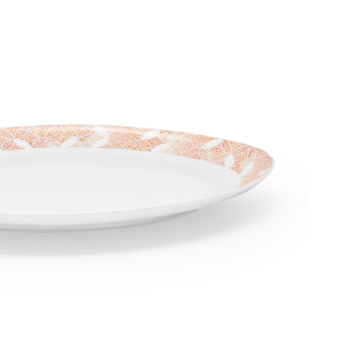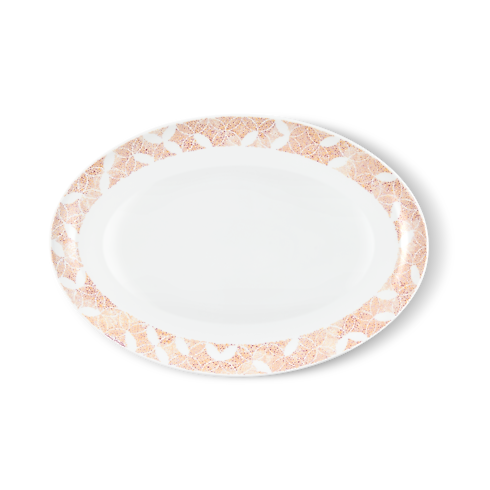 Pelengkap sempurna untuk kreasi lain dari seri yang sama, Constellation oval platter yang indah dan fungsional menjadikan penyajian di meja makan sebuah pengalaman yang elegan. Motif grafisnya menghadirkan interpretasi baru dari emblem historis Rumah Mode, yaitu motif Monogram Flower dan Diamond, dalam jalinan garis yang memukau. Terbuat dari porselen berwarna sangat putih berkualitas tinggi, piring ini dirancang dengan sangat cermat, mewujudkan seni hidup khas Louis Vuitton.
