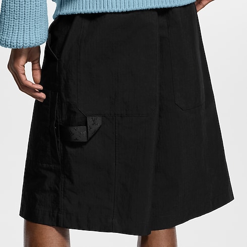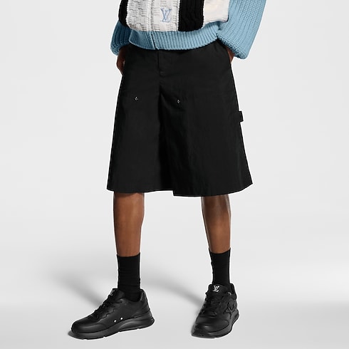 Terbuat dari material technical cotton ripstop, celana pendek kargo warna hitam ini hadir dalam gaya kasual yang terasa nyaman dikenakan di musim panas. Desainnya dilengkapi sejumlah detail fungsional, seperti saku di atas lutut berhias aksen rivet Monogram Flower dan Monogram hammer loop dari bahan grosgrain pada bagian saku kiri belakang. Celana ini dapat dipadupadankan dengan busana bernuansa hitam lainnya dari koleksi ini untuk tampilan urban yang modern.