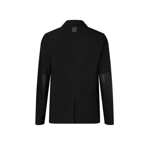 Jaket model single-breasted berwarna hitam ini tampil elegan dengan detail bergaya utilitarian. Dibuat dari bahan technical cotton ripstop, jaket khas musim panas yang tanpa lining ini dilengkapi kerah dengan ujung beritsleting dan patch berbahan kulit warna hitam pada bagian siku. Saku di dada berhiaskan ornamen LV, sementara patch Marque L.Vuitton Déposée dari bahan kulit warna hitam terlihat di bagian punggung. Jaket ini dapat dikenakan bersama celana panjang cargo senada untuk gaya city look yang serba hitam.