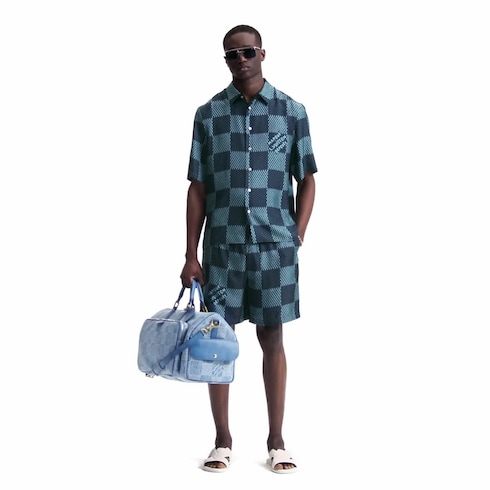 Terbuat dari bahan silk twill mewah, kemeja lengan pendek ini berhiaskan motif Damier disertai aksen Marque L.Vuitton Déposée signature di seluruh permukaannya. Bahannya yang mengilap dan bernuansa biru elegan mudah dipadupadankan dengan busana berwarna polos untuk tampilan chic di musim panas. Model ini terlihat menawan saat dikenakan sepanjang hari bersama celana pendek yang serasi.