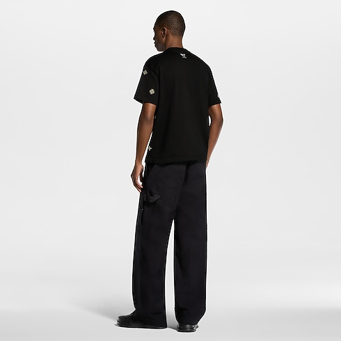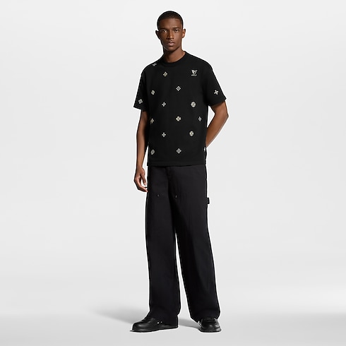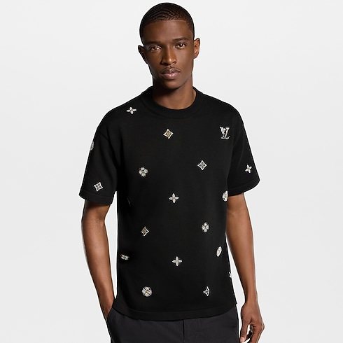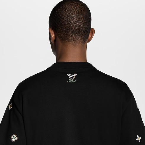Atasan lengan pendek bermodel leher crewneck warna hitam ini tampil chic dalam bahan katun organik serta berhiaskan motif LV Flowers khas musim ini. Ornamen bunga menyerupai Monogram Flower yang dirangkai dari rhinestone diaplikasikan pada bagian depan, lengan, dan belakang, untuk memberi aksen menawan. Atasan ini dapat dipadukan dengan busana warna hitam dari koleksi ini agar berkesan memikat.