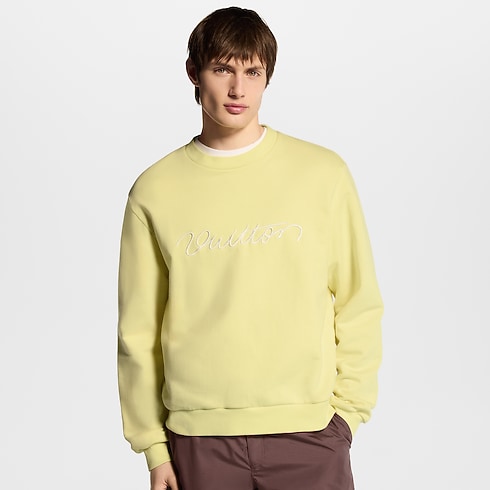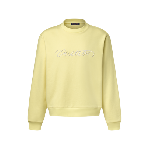 Atasan lengan panjang bermodel leher crew neck ini hadir dalam bahan katun berwarna vanilla yellow lembut, yang sangat cocok untuk musim semi. Terinspirasi dari salah satu sweater favorit Pharrell Williams, desainnya ini menampilkan detail tulisan Vuitton berwarna putih kontras di bagian dada dalam gaya cursive yang elegan melalui teknik bordir 3D. Sweater ini mudah dipadupadankan dengan busana kasual bernuansa pastel khas musim ini.