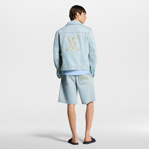 Jaket blouson bergaya workwear yang kasual dan elegan ini dibuat dari bahan denim organik bernuansa pale dengan efek washed. Bordir Louis Vuitton berwarna emas dalam gaya kursif memberikan sentuhan menawan pada bagian dada kiri, sementara bordir floral LV Blooming yang romantis di bagian belakang menampilkan ciri khas Rumah Mode. Detail lainnya meliputi aksen jahitan bernuansa tobacco dan lining berwarna gingham yang ceria. Jaket ini dapat dipadukan dengan celana pendek serasi untuk menyajikan nuansa musim panas.