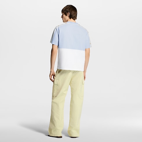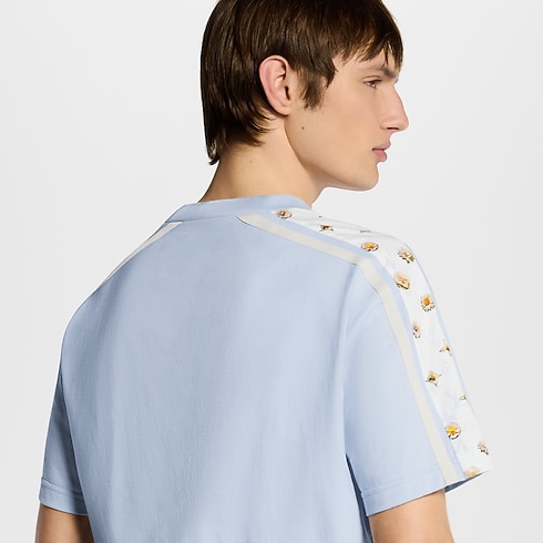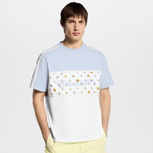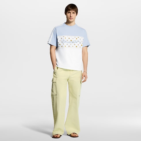 T-shirt dari bahan katun organik berwarna biru muda dan putih ini dihiasi dengan motif bunga khas musim semi yang berkesan ceria. Motif Blooming Monogram menghiasi bagian dada dan lengan dengan aksen sporty, sementara bordir tulisan Vuitton dalam huruf kursif dengan benang berkilau menambah detail ikonis di bagian depan. T-shirt ini sempurna dipadukan dengan kreasi lainnya yang bernuansa pastel dari koleksi ini untuk tampilan kasual yang penuh gaya.