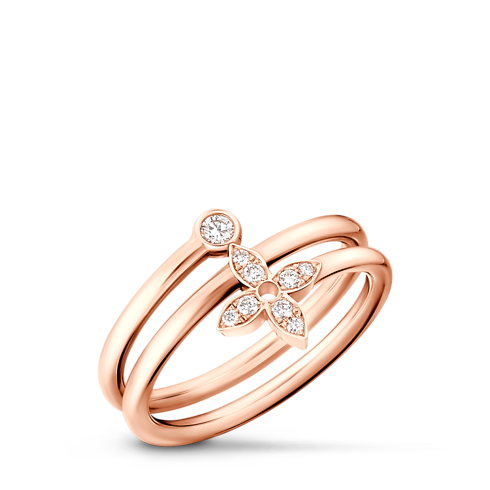 Idylle Blossom Multi ring menghadirkan ikon Louis Vuitton dalam desain spiral yang artistik. Terbuat dari material pink gold dan dihiasi sembilan berlian yang berkilau, cincin ini memadukan Monogram Flower berbentuk bintang dengan detail bulat yang melambangkan keabadian. Cincin bergaya modern dan feminin ini memberi kesan anggun pada berbagai penampilan.