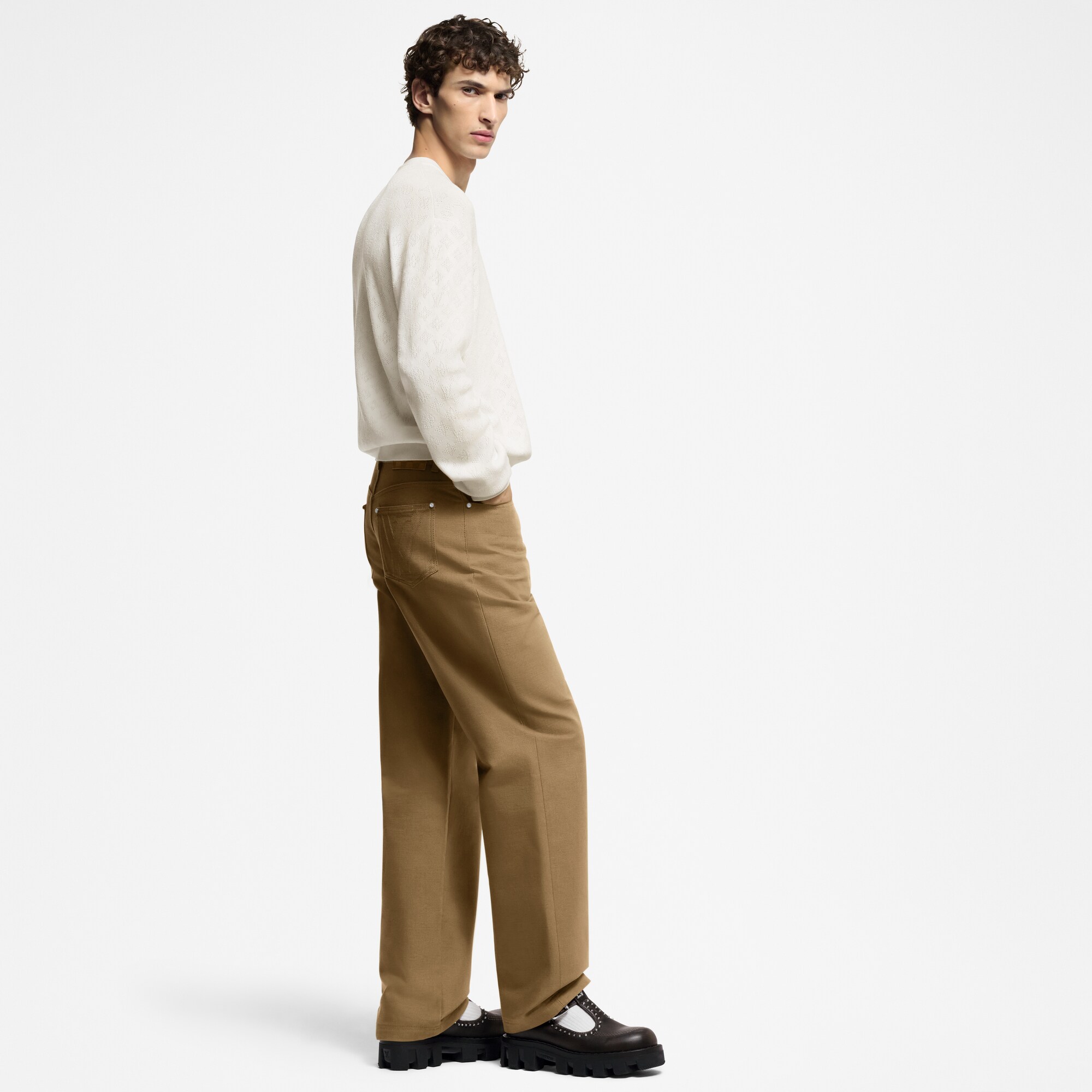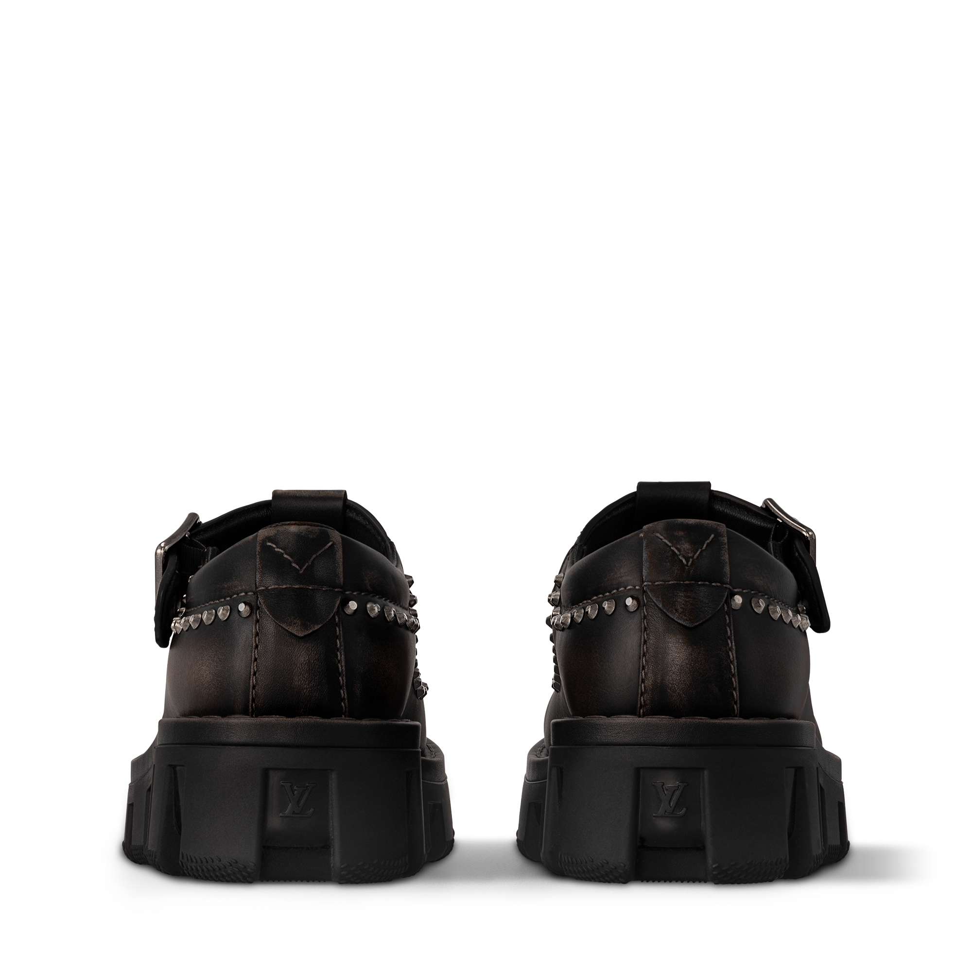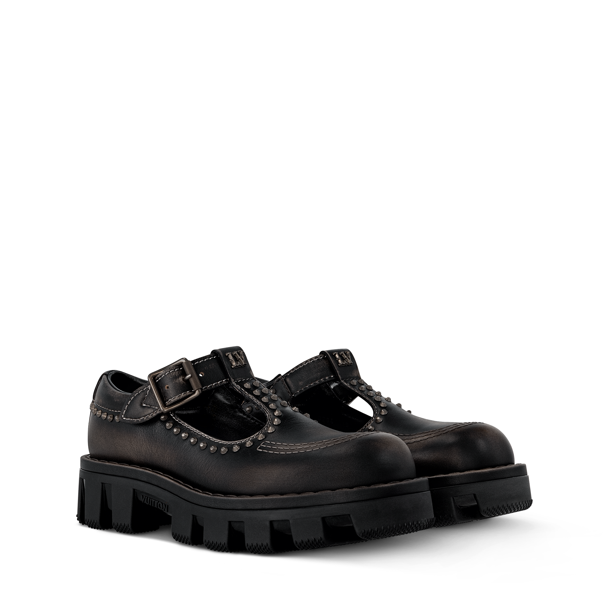 LV Checker Mary Jane hadir kembali di musim ini dengan tampilan klasik dalam bahan calf leather halus. Bagian atasnya dilengkapi aksen jahitan berwarna kontras, stud dan gesper bernuansa silver, serta LV Initials signature pada bagian lidah. Inspirasi gaya workwear terlihat pada outsole berbahan karet yang tebal namun ringan, disertai tapak bercorak Damier.