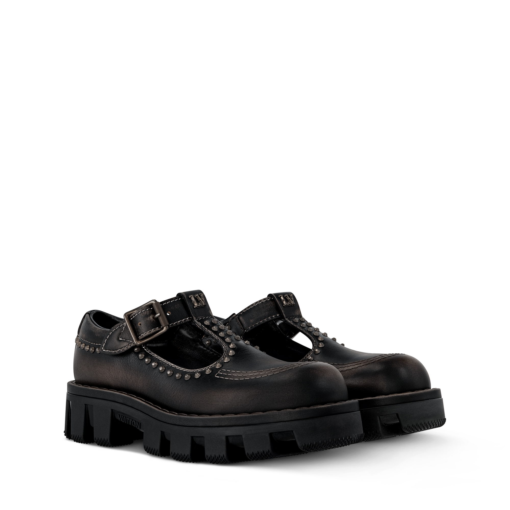 LV Checker Mary Jane hadir kembali di musim ini dengan tampilan klasik dalam bahan calf leather halus. Bagian atasnya dilengkapi aksen jahitan berwarna kontras, stud dan gesper bernuansa silver, serta LV Initials signature pada bagian lidah. Inspirasi gaya workwear terlihat pada outsole berbahan karet yang tebal namun ringan, disertai tapak bercorak Damier.