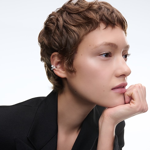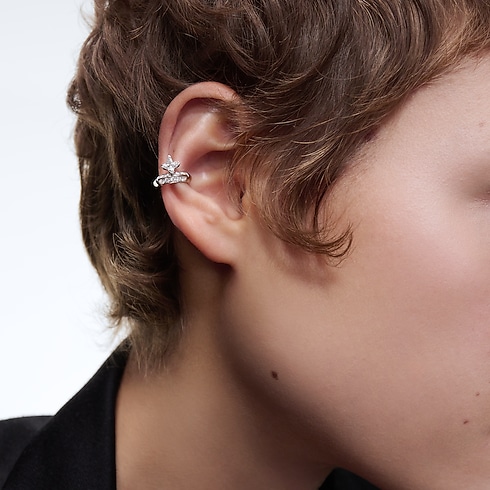 LV Diamonds earcuff ini menghadirkan kreasi perhiasan dengan sentuhan memukau khas Rumah Mode. Didesain dari material white gold 18 karat, anting model earcuff ini menampilkan LV Monogram Star cut diamond disertai bagian cuff yang berhiaskan berlian model brilliant round-cut. Nuansa khas Rumah Mode terlihat melalui center stone basket yang terinspirasi dari ornamen bunga pada corak Monogram ikonis Louis Vuitton. Kreasi bergaya ceria ini dapat dipadupadankan dengan mudah, serta dapat menjadi hadiah istimewa yang selalu dikenang.