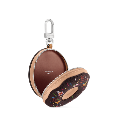 LV Donut yang ceria kembali hadir musim ini! Dikreasikan dalam warna cokelat sebagai bagian dari animasi transversal dengan leather good berukuran kecil, khusus untuk merayakan Hari Valentine, Gantungan berbahan leather ini dilapisi icing cokelat dari material kanvas, dihiasi taburan logam berwarna pelangi, serta Inisial dan Monogram Flower menyerupai permen. Pouch beritsleting ini dapat menyimpan sepasang earphone nirkabel.