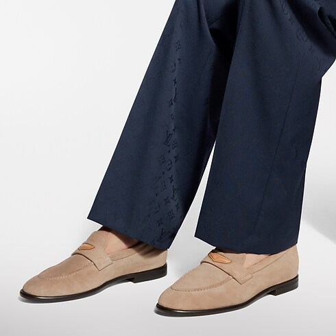 Terbuat dari bahan suede calf leather, LV Gent loafer menghadirkan desain yang halus sekaligus lentur melalui material berkualitas dan model sacchetto construction klasik. Strap pada bagian atas dilengkapi oleh insert dari bahan natural leather dengan emboss LV Initials dan aksen jahitan berwarna kuning, yang terinspirasi dari koleksi leather goods Rumah Mode.