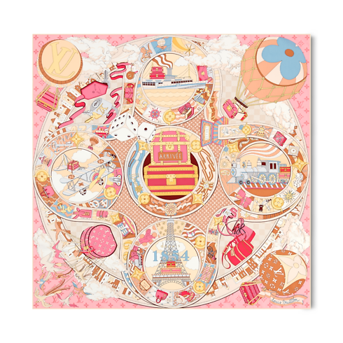 Dibuat dari bahan sutra, LV Journey square ini menghadirkan nuansa travel dengan sensasi petualangan yang istimewa. Desainnya menampilkan corak berbentuk koper, balon udara, kereta api, kapal laut, dan pesawat terbang dengan detail memikat, dipadukan aksen dadu, awan, serta motif Monogram dan Damier ikonis Rumah Mode. Aksesori ini menyajikan sentuhan elegan saat dikenakan.