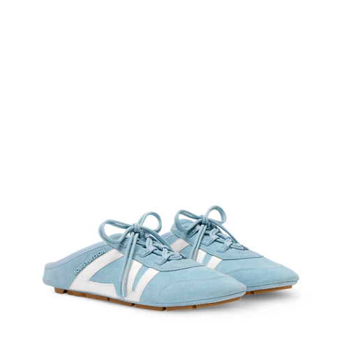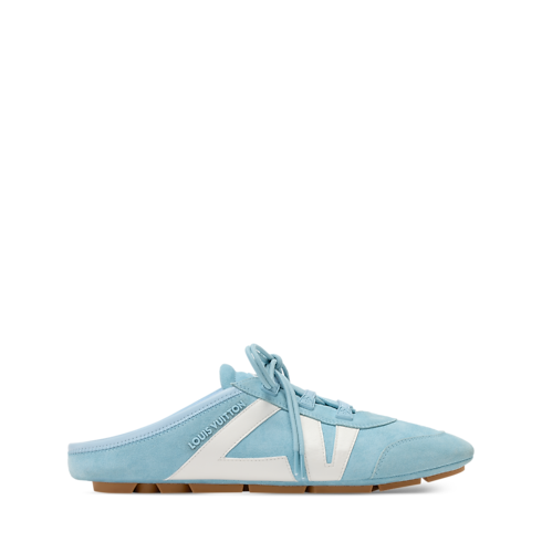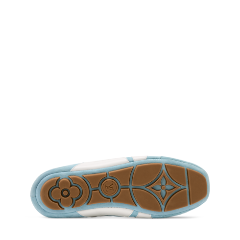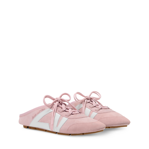 LV Sneakerina open-back sneaker ballerina menyajikan model slip on yang kasual pada desain ikonis. Bagian atasnya terbuat dari material suede calf leatehr bernuansa warna pastel, dengan aksen LV dari bahan calf leather halus berwarna kontras di bagian samping. Sepatu ini hadir dengan sacchetto construction yang ringan dan TPU outsole, serta dilengkapi tali sepatu berwarna senada.