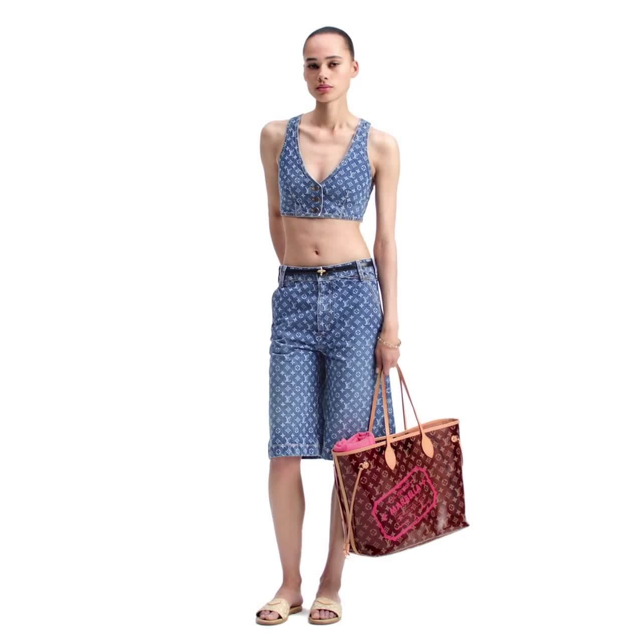 Crop top model V-neck ini terlihat chic dalam bahan denim berhiaskan motif Monogram di seluruh permukaannya. Desainnya yang kasual hadir dengan potongan yang mengikuti lekuk tubuh dan semakin memikat disertai aksen jahitan berwarna kuning kontras. Dilengkapi tiga kancing berukiran Louis Vuitton di bagian dada, atasan ini dapat disesuaikan dengan tab berbahan natural leather pada bagian belakang.
