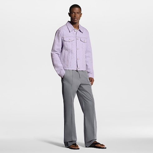 Denim trucker jacket ini terlihat menyegarkan dalam nuansa lilac ceria yang terinspirasi dari nuansa musim semi. Bahan kain yang berhias motif Monogram jacquard melalui proses pewarnaan overdyeing untuk menghasilkan tampilan bertekstur halus dan unik. Kancing mutiara berwarna senada memberikan sentuhan akhir yang chic. Jaket ini dapat dipadukan dengan celana pendek serasi untuk kesan memikat.