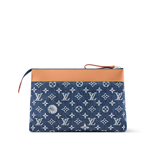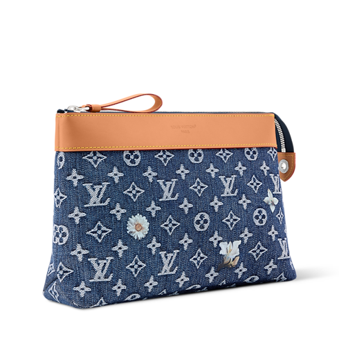 Pochette Voyage Souple pouch yang memikat ini hadir dalam nuansa warna lembut, dibuat dari material Monogram Flowers Denim dengan aksen trimming berbahan cowhide-leather. Motif Monogram yang ditenun dalam efek tidak sempurna secara visual dihiasi dengan bordir bunga yang menciptakan kesan kasual namun tetap elegan. Lining berbahan tekstil ecru di bagian dalam melapisi saku belakang yang dilengkapi penutup magnetis untuk menambah fungsionalitas.
